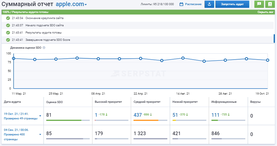 Настраивайте автоматические аудиты для вашего сайта, чтобы контролировать его состояние. Найдите проблемы, которые мешают вашему росту в поиске, и получите рекомендации по их устранению. Инструмент поможет вам обнаружить более 60 различных типов проблем, отображаемых по приоритетности.
