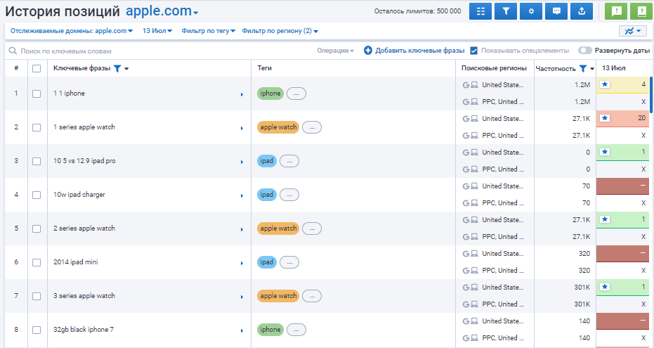 Отслеживайте позиции сайта и конкурентов ежедневно, еженедельно или по необходимости