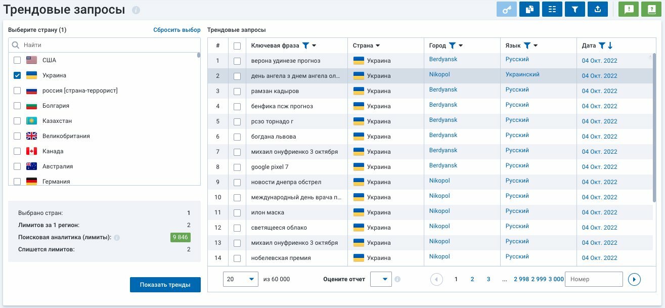 Мгновенно реагируйте на изменения в вашей нише с помощью трендовых запросов.