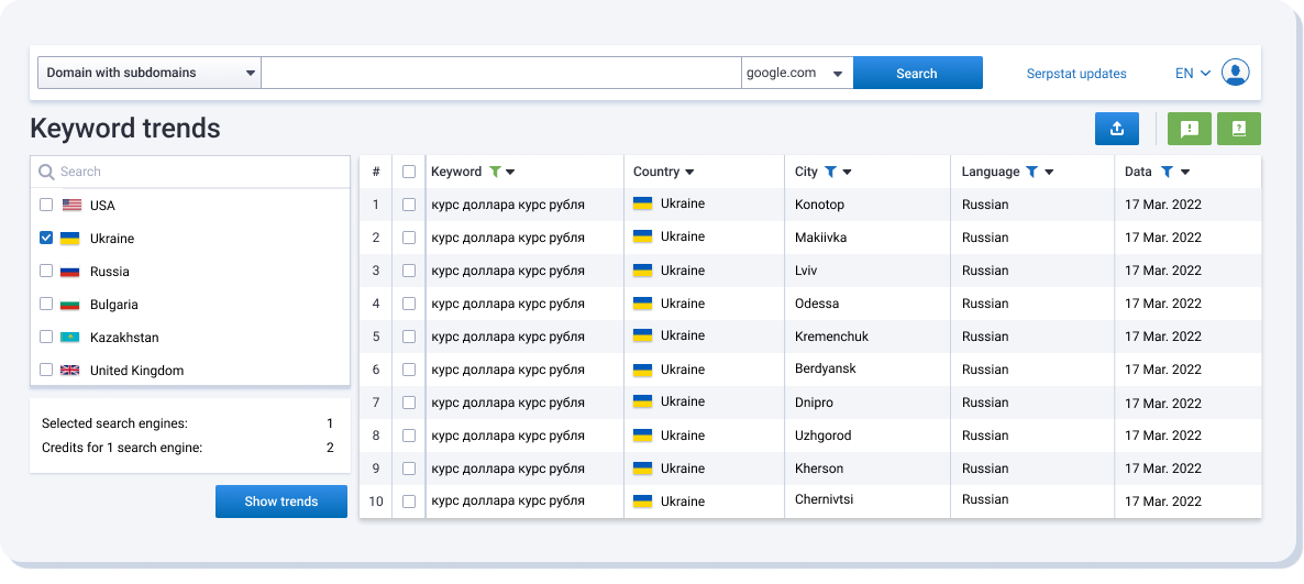 Try services for parsing Google and Yandex results and for mass analysis of search results. Detect trending queries, check the frequency of thousands of phrases on a schedule, and collect complete data on an array of keywords in search engine results.