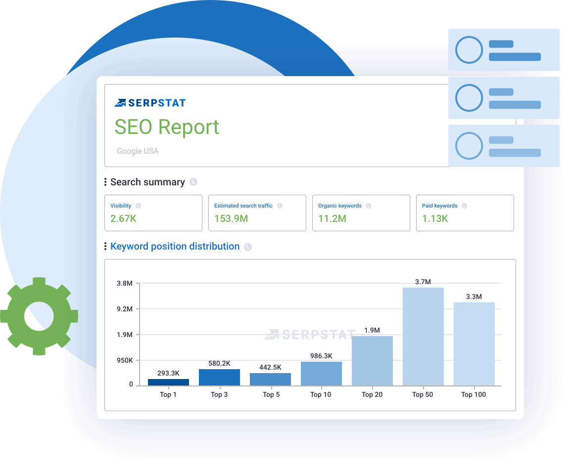 Clients of digital agencies want to see progress on their projects. Create clear reporting with the most important KPIs on schedule and minimize manual work with the online Serpstat builder.