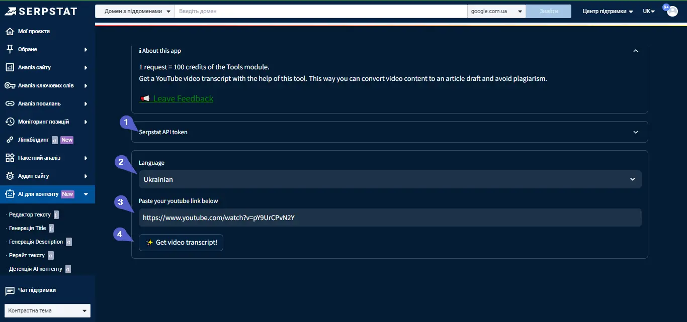 Завдяки таким інструментам, як Serpstat, які тепер інтегровані в ChatGPT, аналіз ключових слів і тем також можна проводити на платформі. Наприклад, функція чату з плагіном Serpstat SEO робить цей аналіз набагато доступнішим для людей, які не мають релевантного досвіду.
