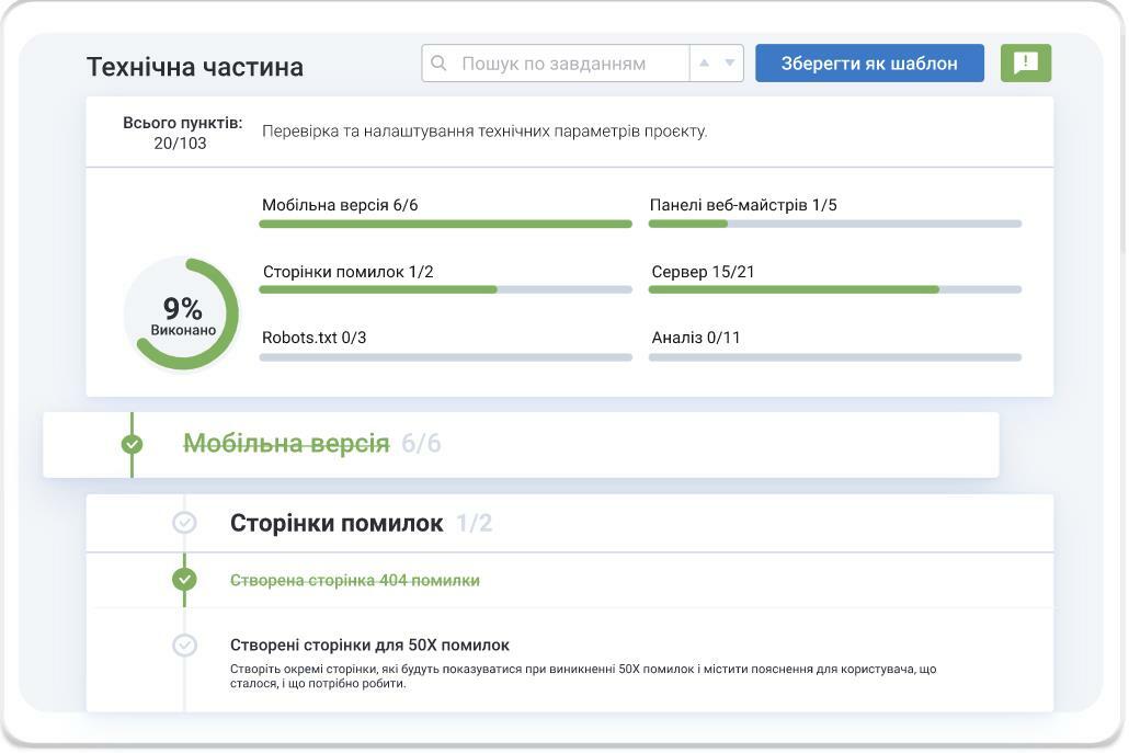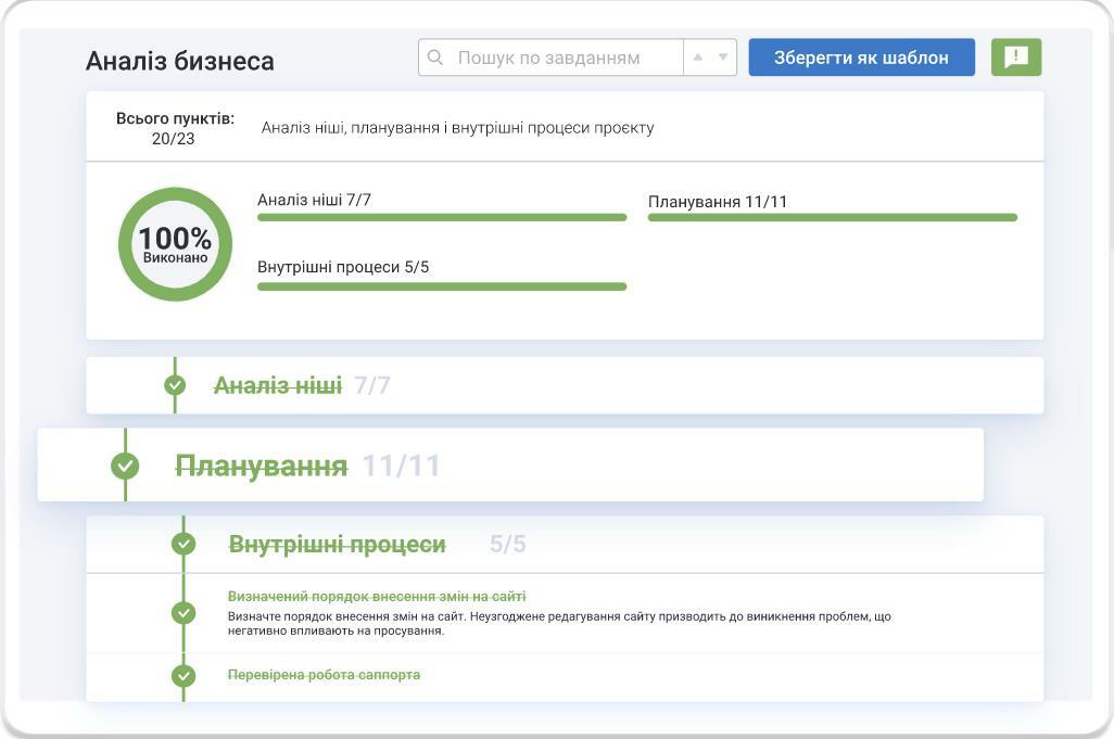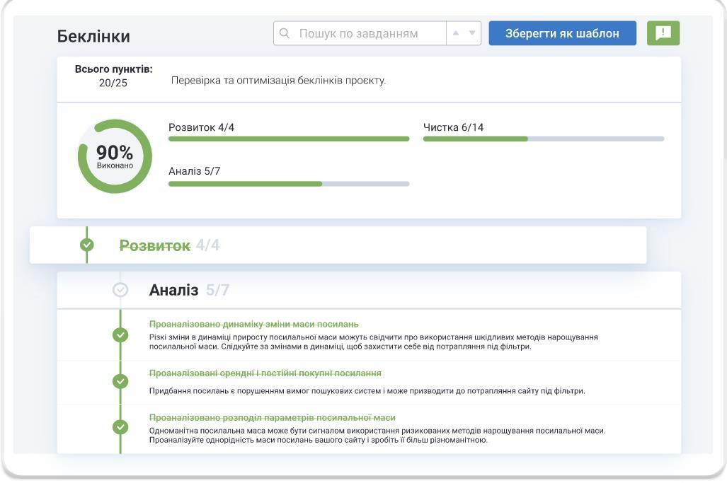 Готові покрокові інструкції для SEO і маркетингових завдань, розроблені провідними спеціалістами-практиками із інтернет-маркетингових компаній. Використовуйте готовий шаблон або створіть свій і відстежуйте прогрес за проєктом.