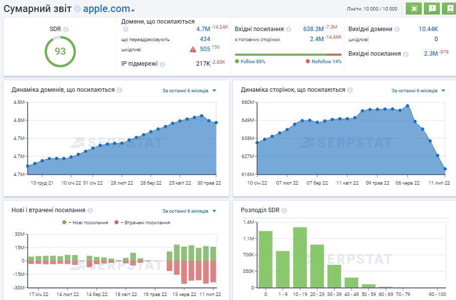 Знайдіть сайти, які посилаються на будь-який аналізований домен, перевірте якість нових і втрачених зворотних посилань, контролюйте список анкорів і виявляйте шкідливі посилання, яких необхідно позбутися. Знайдіть ідеї для побудови профілю посилань, виходячи з досвіду ваших конкурентів.