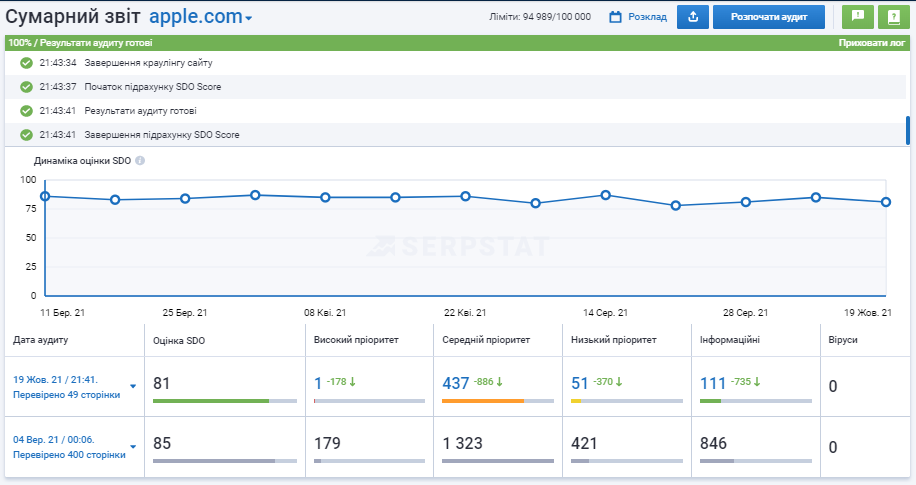 Налаштуйте автоматичні аудити для вашого сайту, щоб контролювати його стан. Знайдіть проблеми, які заважають вашому зростанню в пошуку, та отримайте рекомендації щодо їх усунення. Інструмент допоможе вам виявити понад 60 різних типів проблем, що відображаються за пріоритетністю.