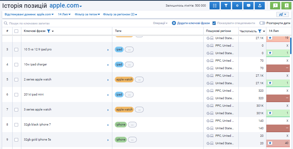 Створіть проект щодо відстеження позицій сайту та щодня контролюйте свою присутність на ринку. Відстежуйте усі топ-100 результатів у будь-якому регіоні та місті Google без додаткової плати. Порівнюйте свої позиції з найбільш релевантними конкурентами та дивіться, як змінювалися позиції.